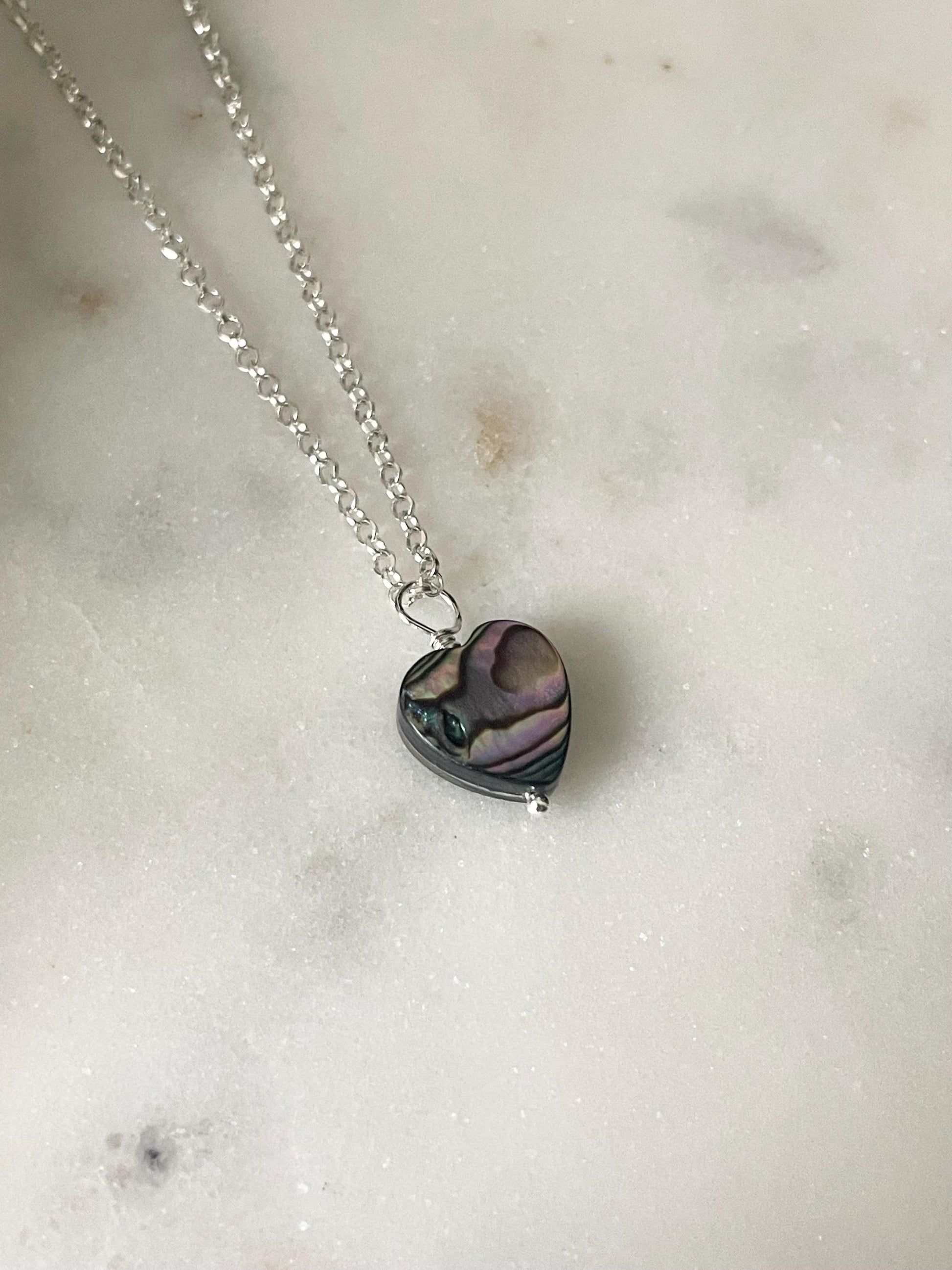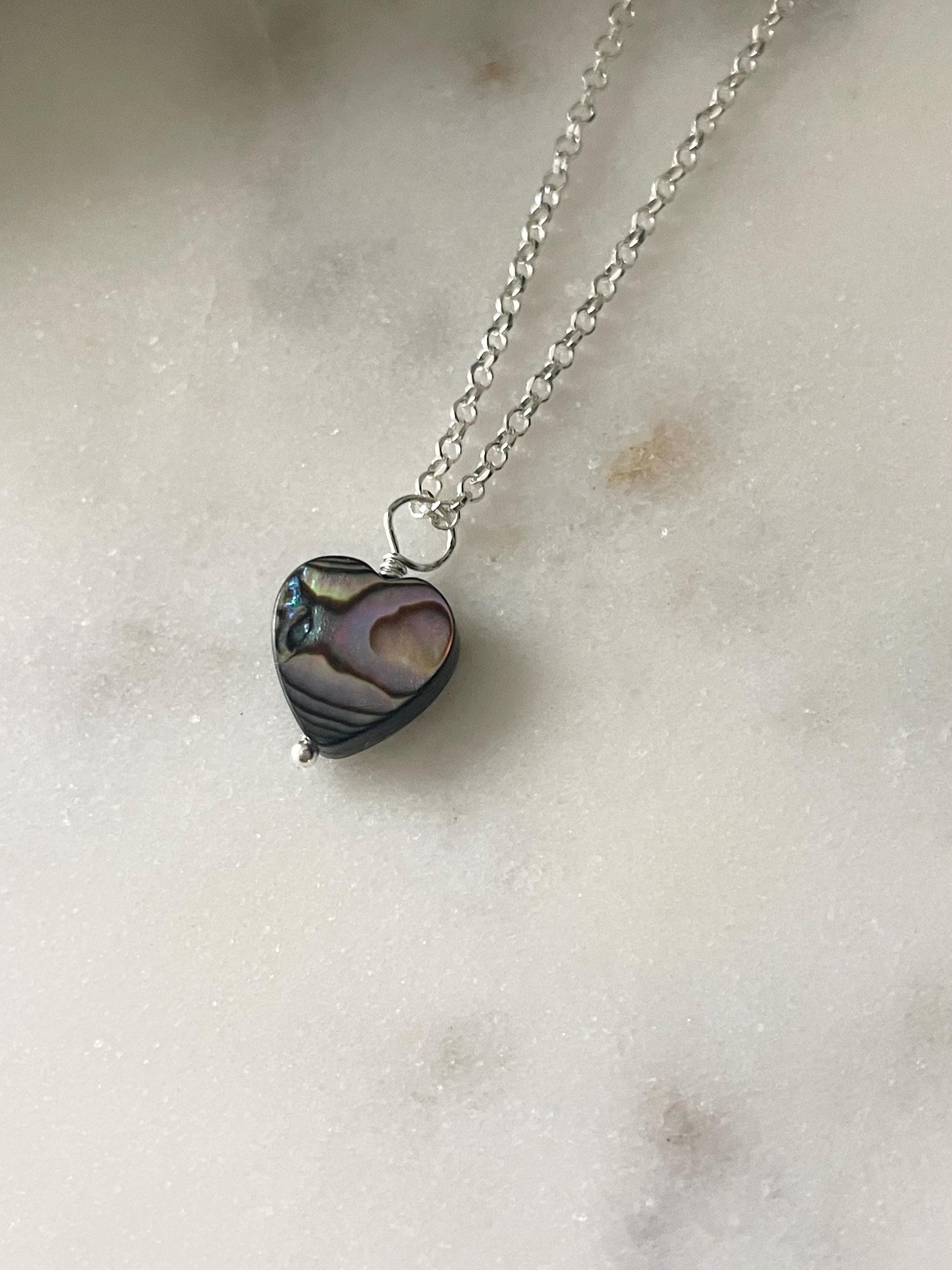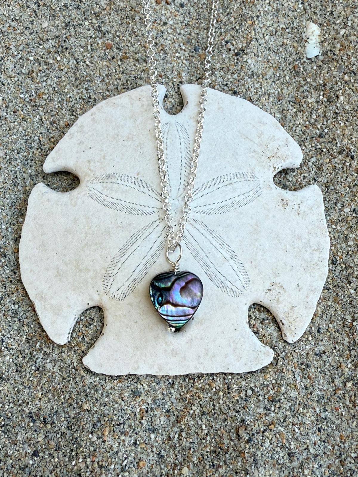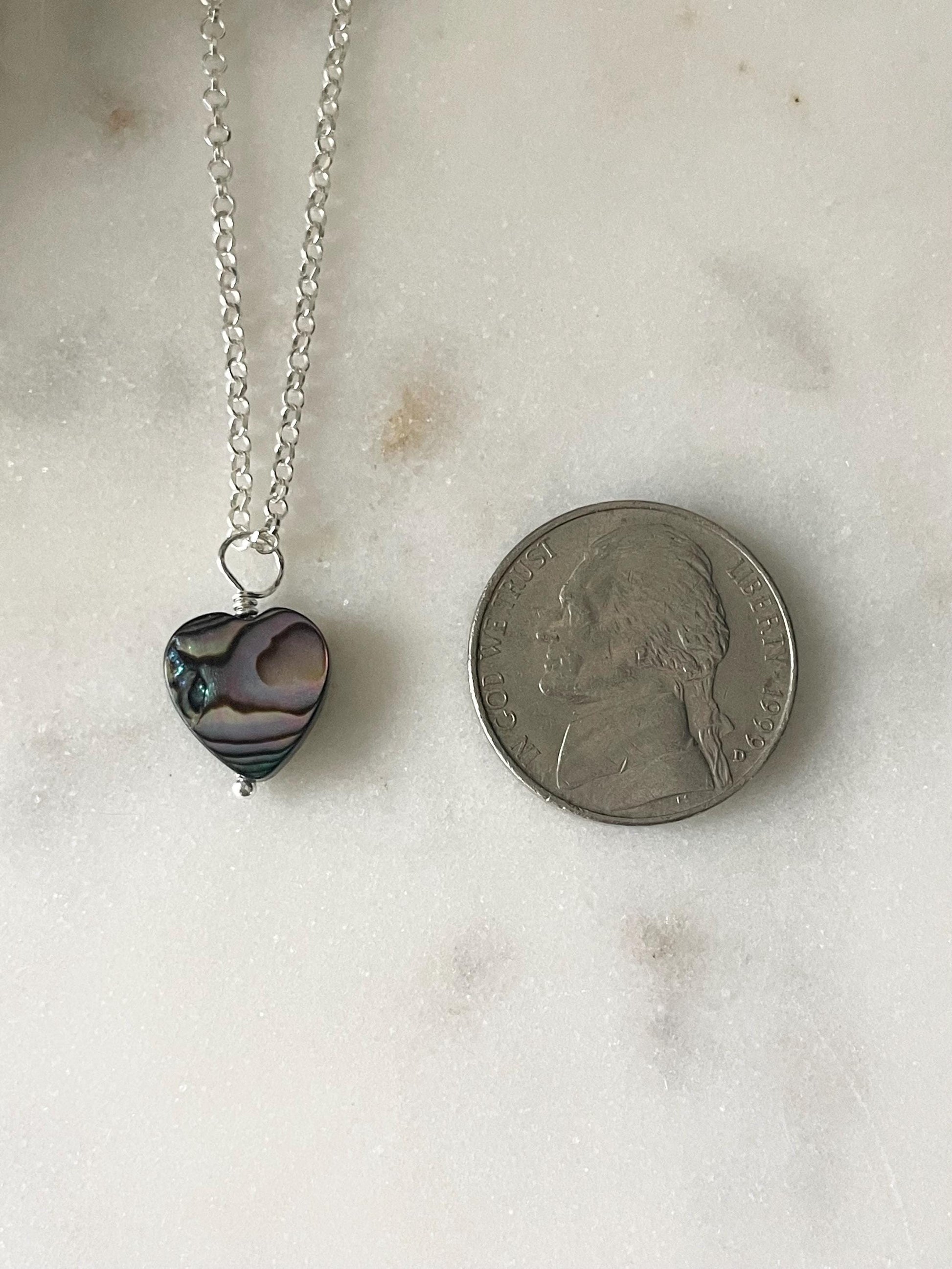 This 10mm heart abalone shell charm is made with sterling silver wire and comes with an 18" sterling silver rolo chain. You will receive a different abalone pendant than pictured. I try to use the most colorful shells I can find. Your necklace will arrive in a package that is ready for gift giving!