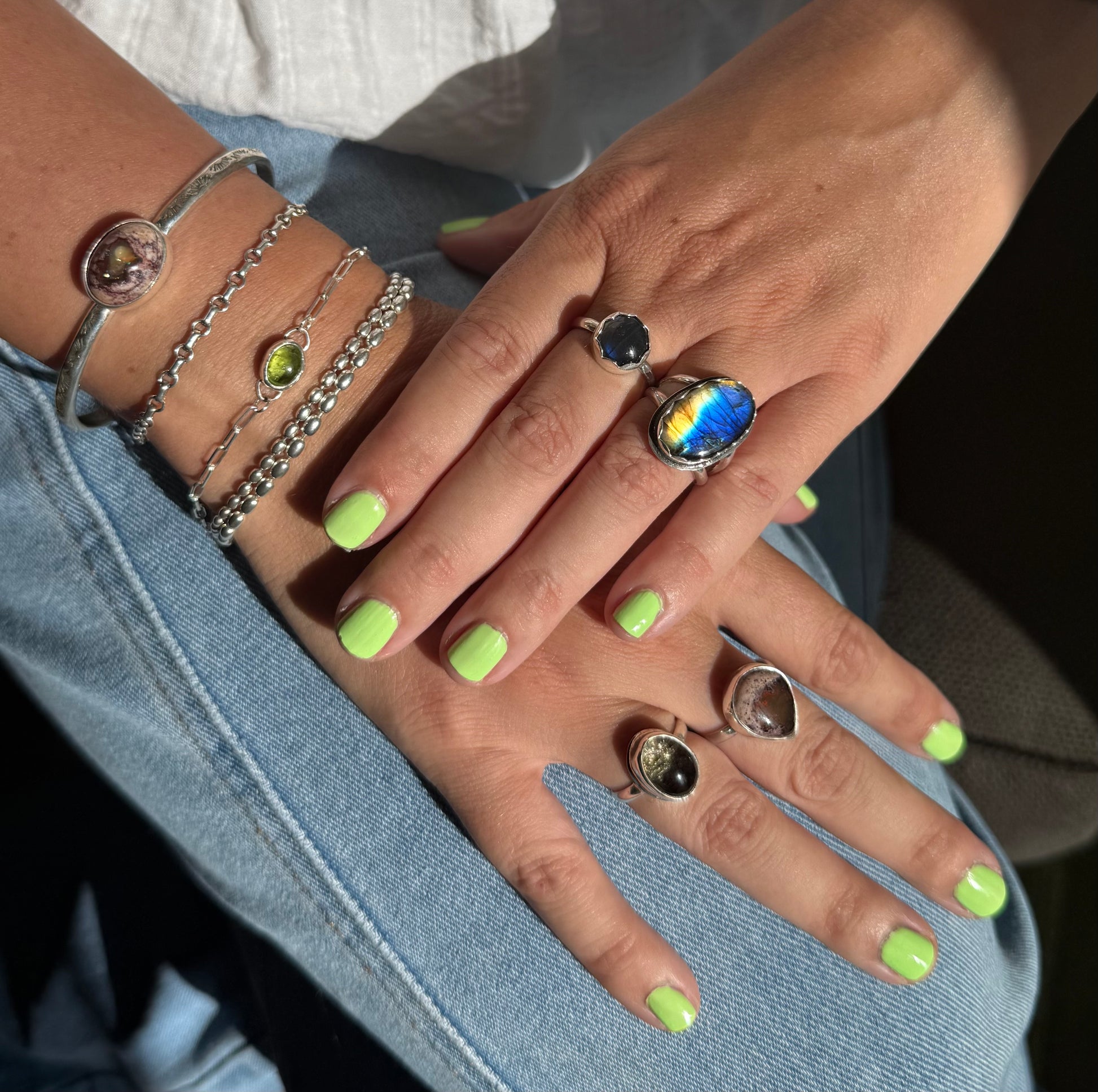 ✨ Handcrafted with love in my sunny Huntington Beach studio, this ring is made using traditional silversmithing techniques. I carefully solder solid sterling silver and hand-set a unique gemstone, creating a piece that’s both meaningful and beautiful.