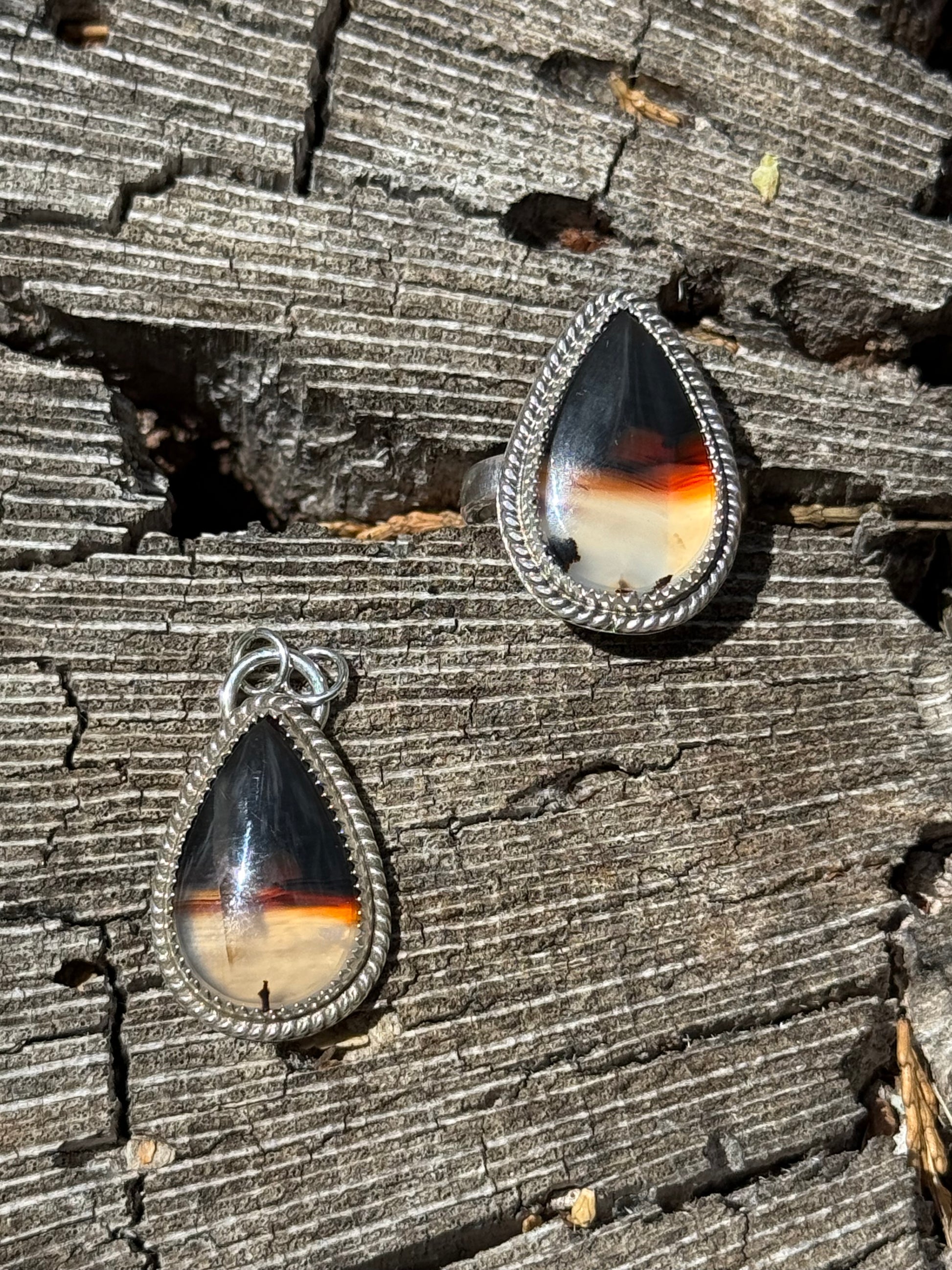 Montana Agate Pendant made with fine and sterling silver. The pendant measures a little over an inch from top to bottom. You will receive the exact pendant as shown. This is for the pendant alone, but sterling chains can be purchased in the shop!