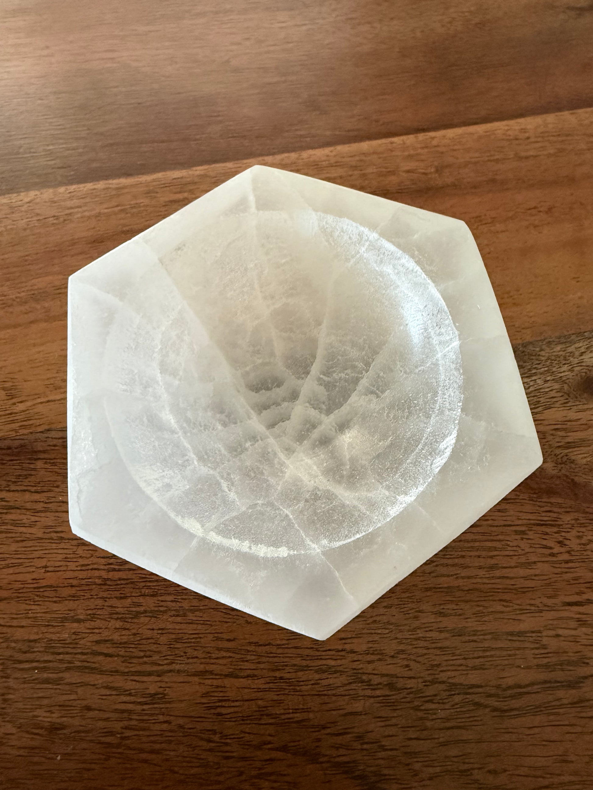 Selenite is a powerful cleansing crystal known for its ability to clear negative energy, promote clarity, and raise the vibration of anything placed on or near it. This selenite dish is especially useful for: