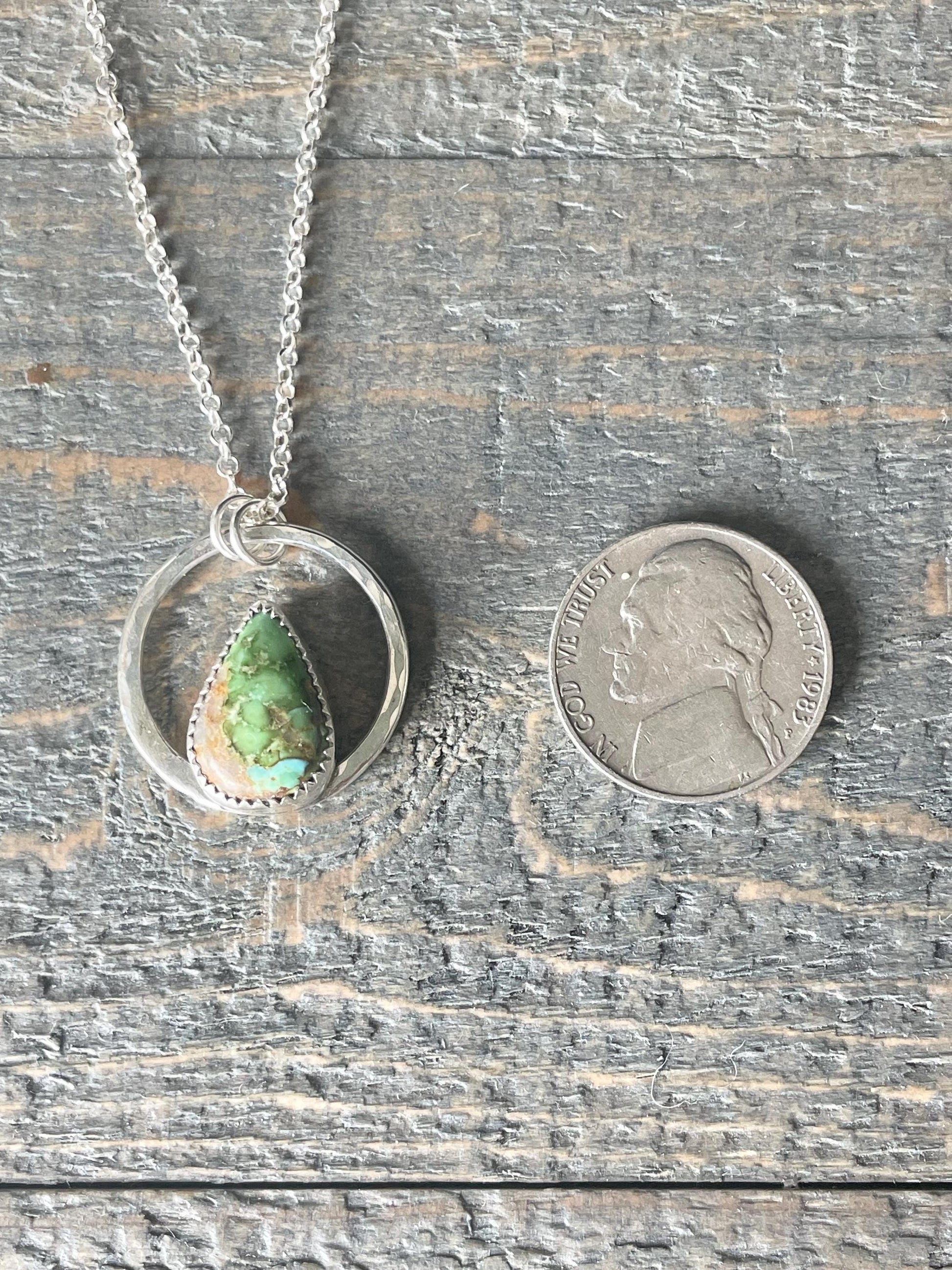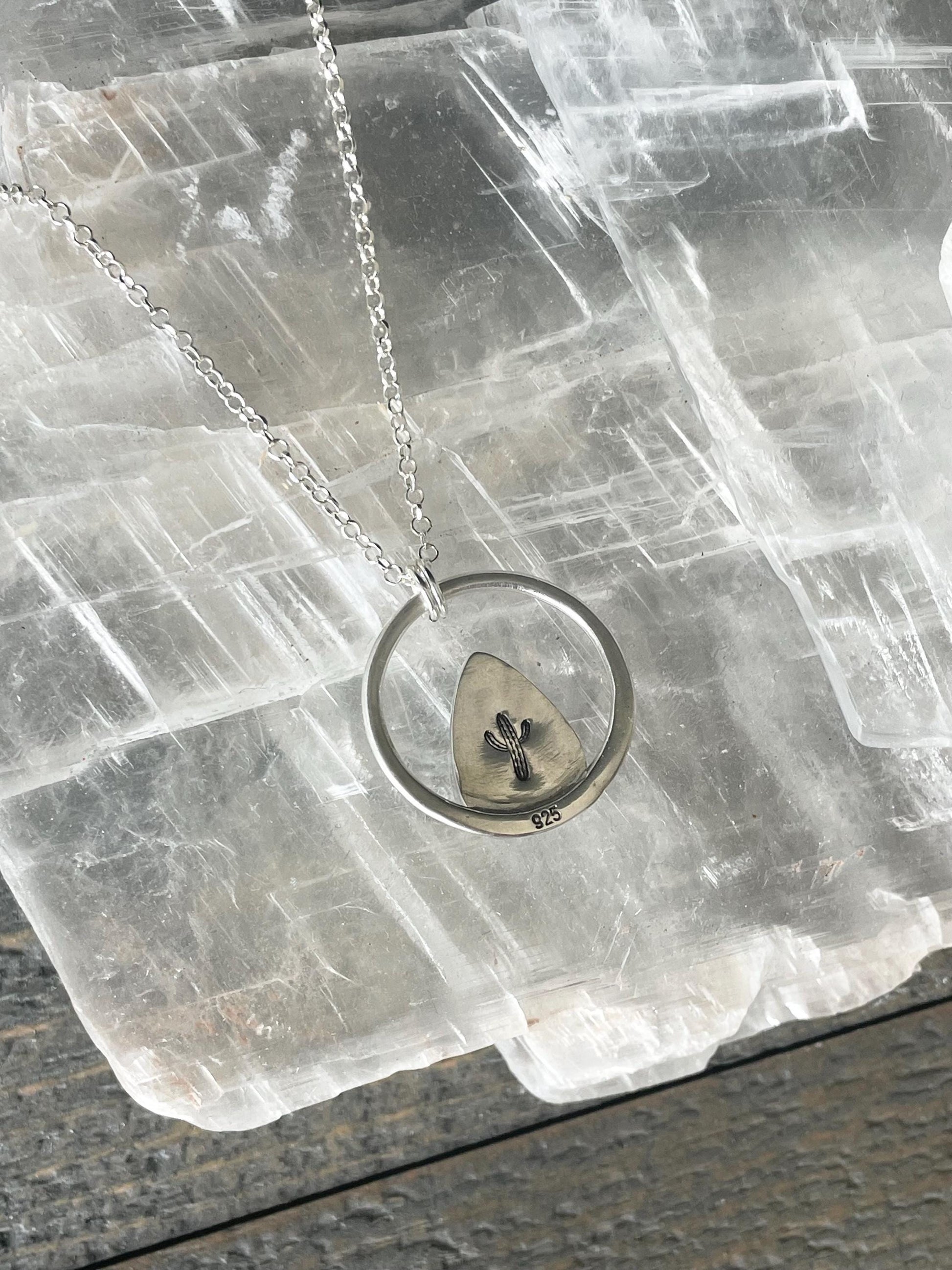This Desert Vibes Turquoise Pendant is made with fine and sterling silver. On the back it has a cute little cactus stamped. This listing is for the pendant only. *rolo chain is pictured*