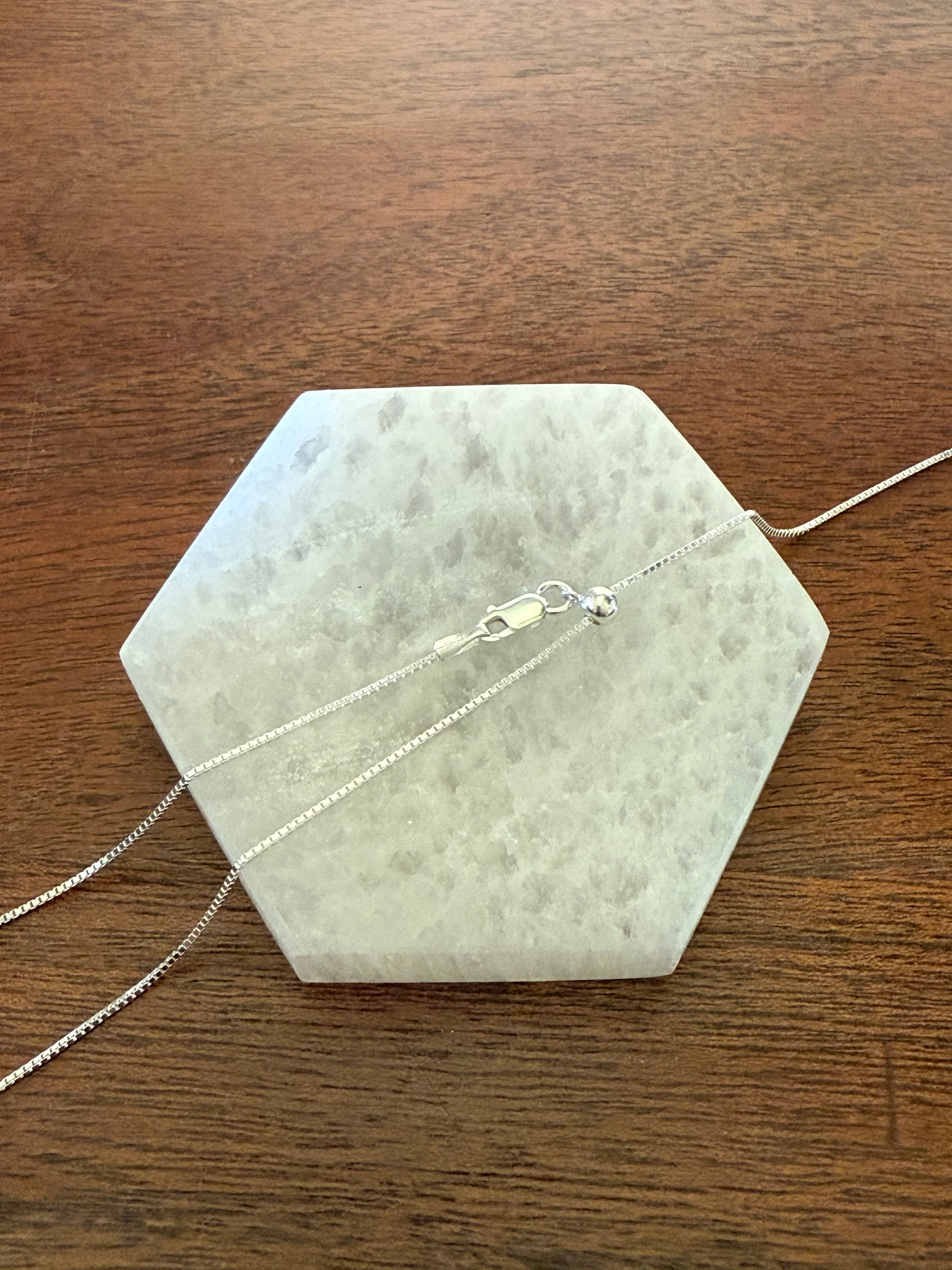 One chain, endless options. This sterling silver beauty adjusts effortlessly up to 24", letting you customize the length to match your vibe. Wear it as a short choker or a long layering piece with just a slide of the bead.