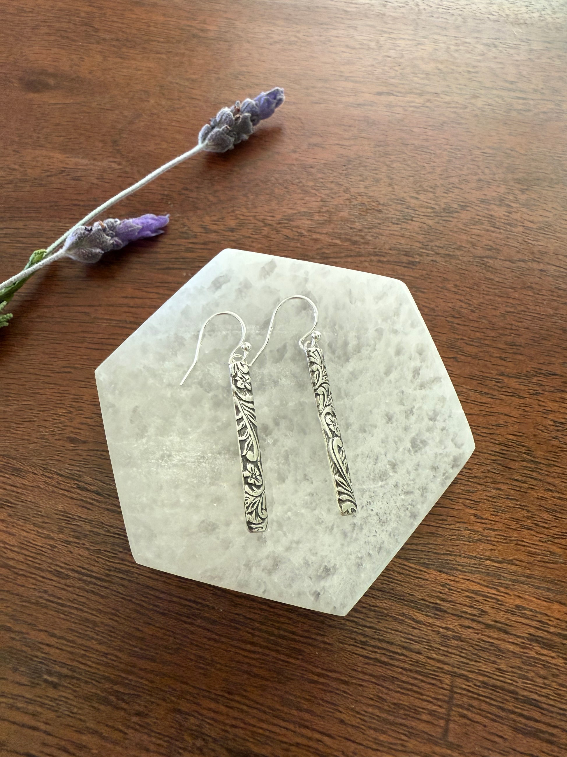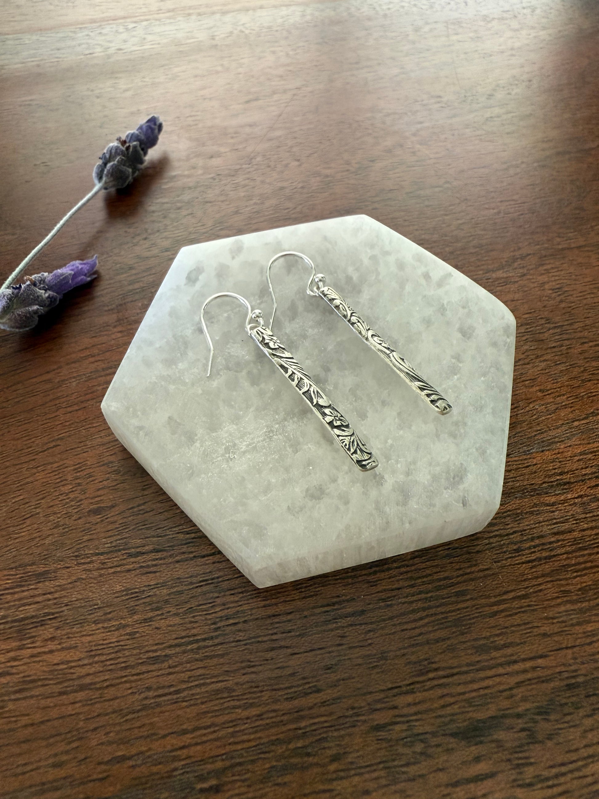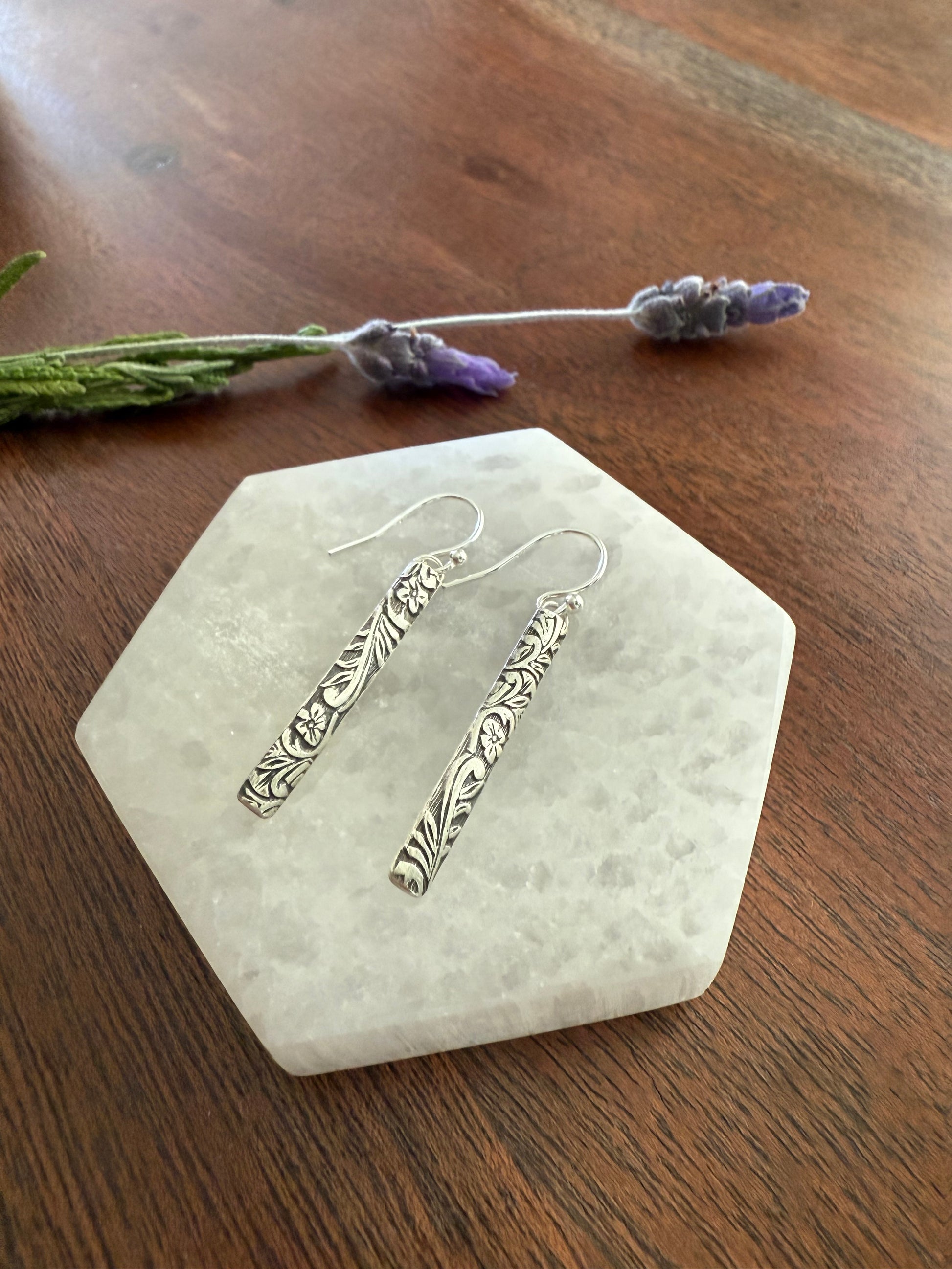 These sterling silver floral bar earrings can be worn everyday with any outfit! They are made entirely of sterling silver, including the posts. Check the shop for the matching ring!