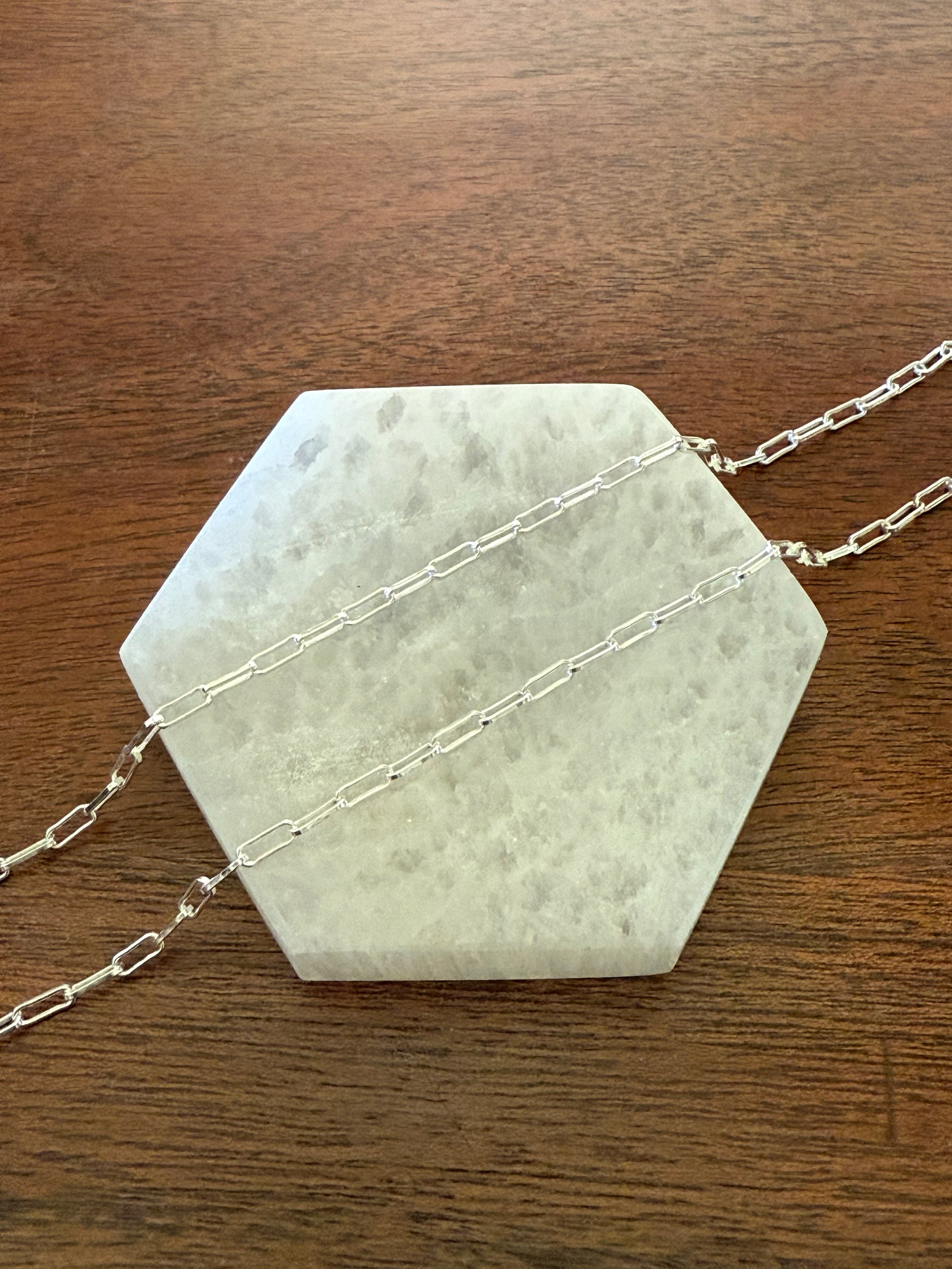 Bold, modern, and effortlessly cool, this sterling silver paperclip chain is a must-have for statement stackers and minimalists alike. With its sleek elongated links, it adds just the right touch of edge and elegance to any look.