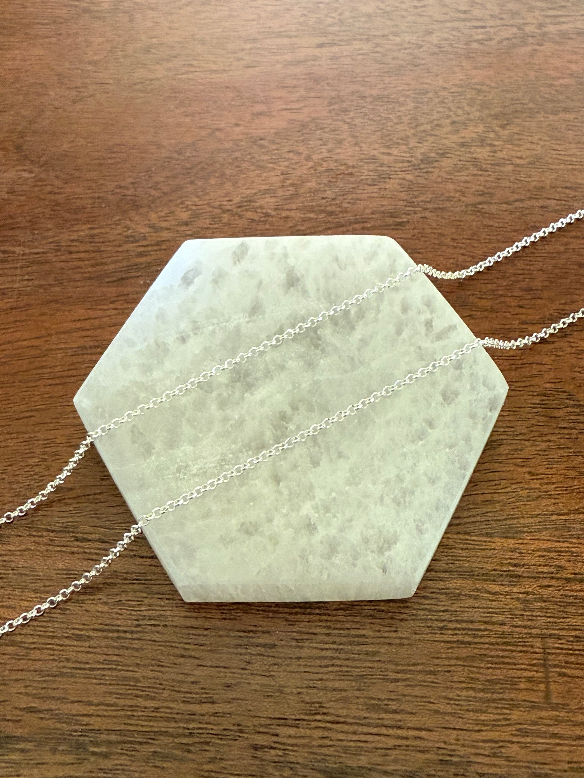 Our most loved chain, and for good reason! The sterling silver rolo chain features classic round links with just the right mix of strength and shine. It’s bold enough to wear solo, yet perfect for layering or pairing with your favorite charms.