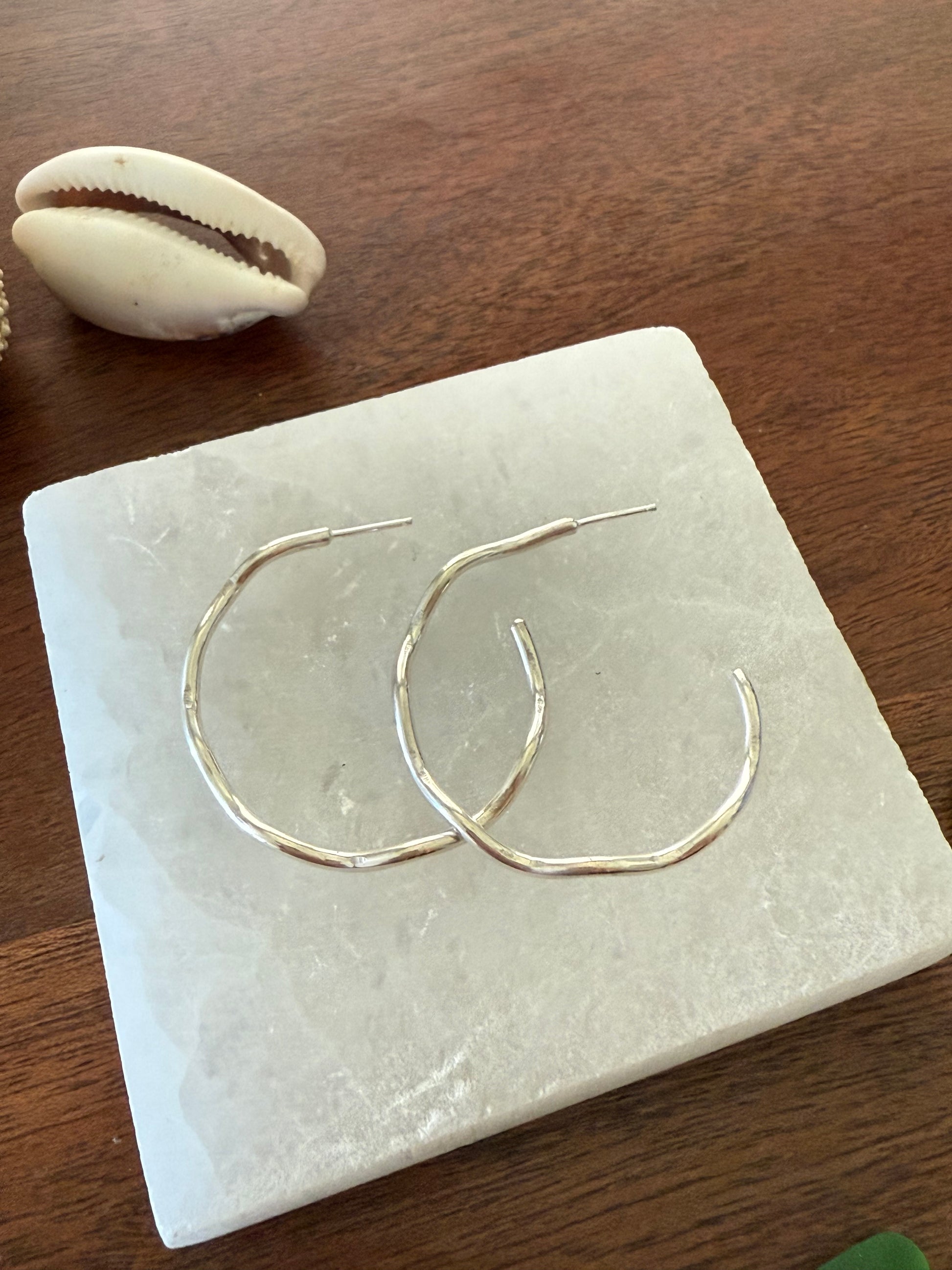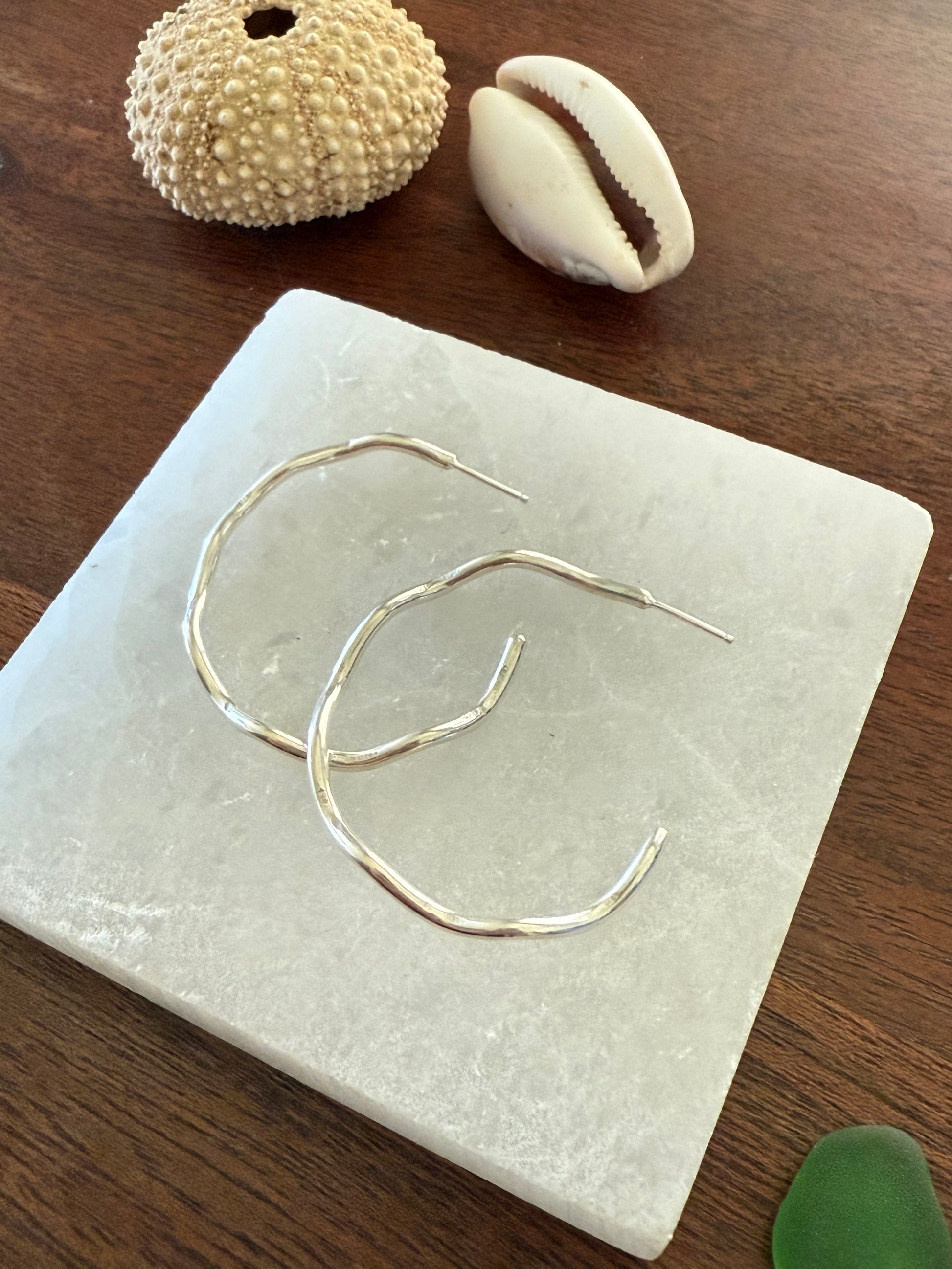 These sterling silver wavy hoop earrings can be worn everyday with any outfit! They are made entirely of sterling silver.